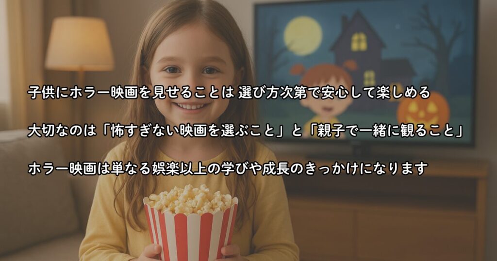 子供にとってホラー映画は、ただ怖いだけではなく「ドキドキ」「ワクワク」といった感情を同時に味わえる貴重な体験です。本記事では、ファンタジー要素やユーモアを含む“安心ホラー”を中心に紹介してきました。